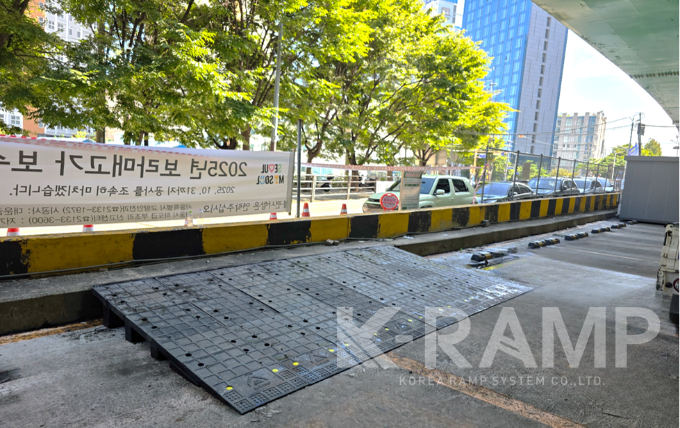 [지게차경사로] 50톤 지게차용 고무경사로 + 하중30톤 차량고무경사로 혼합 시공